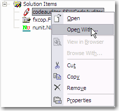 Right click the newly added file and select " Open With "