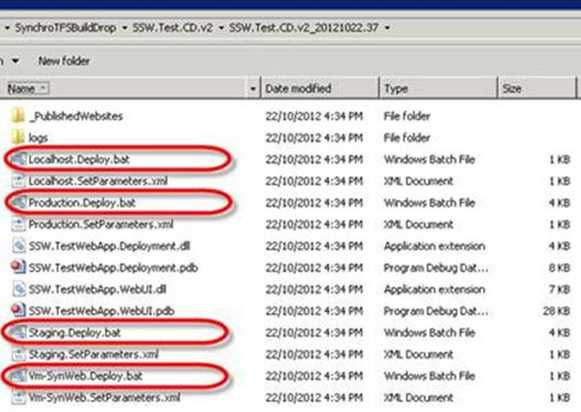 This means that if you deploy version 37, and then want to roll back to version 36 simply open the folder for 36 and re-run that batch file (assuming there has been no breaking DB schema changes).
