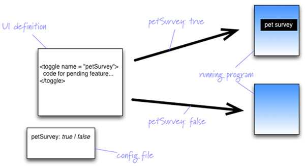 See FeatureToggle by Martin Fowler. Feature Toggling can require a large amount of extra work and so is often only implemented by teams with a need to ship features while others are still in development