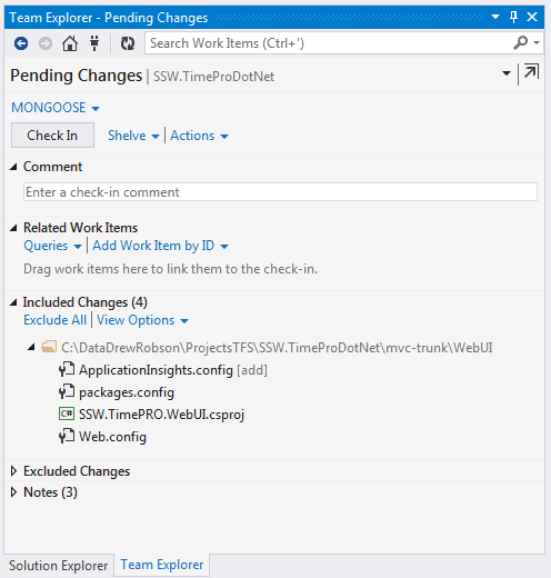 Figure: This will update your project with the NuGet package and settings to include Application Insights in your project. Check this in and deploy your website.