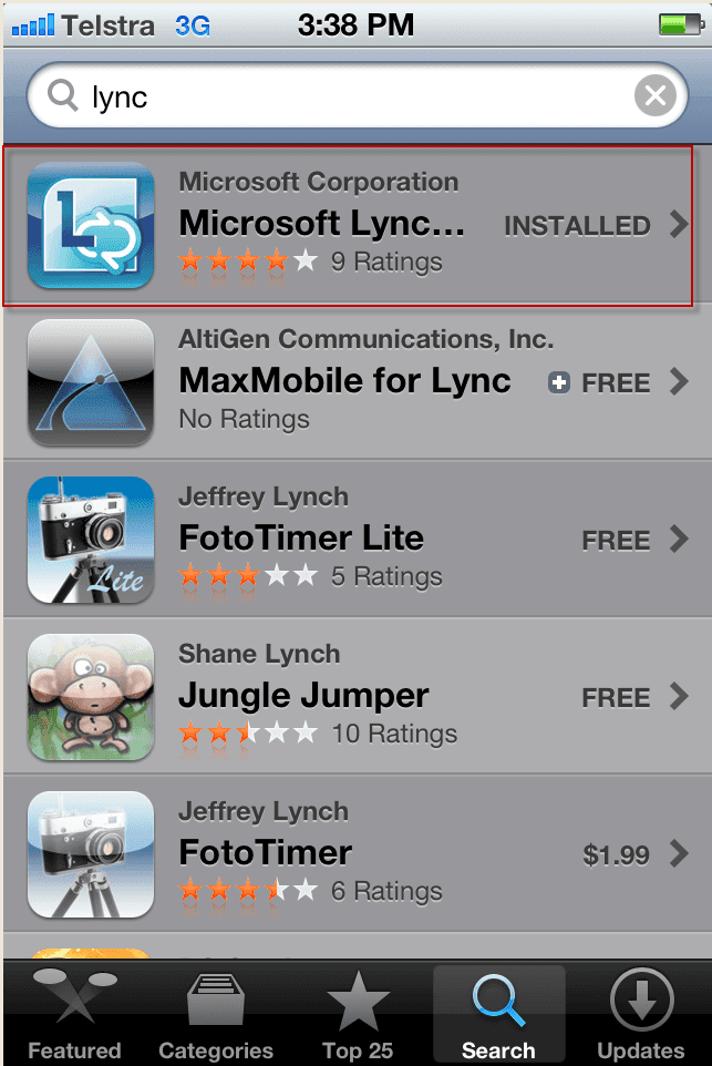 - Search for “Lync” in the Apple App store