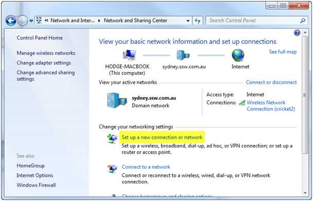 Figure 2 - Click on "Setup a new connection or network" 4.