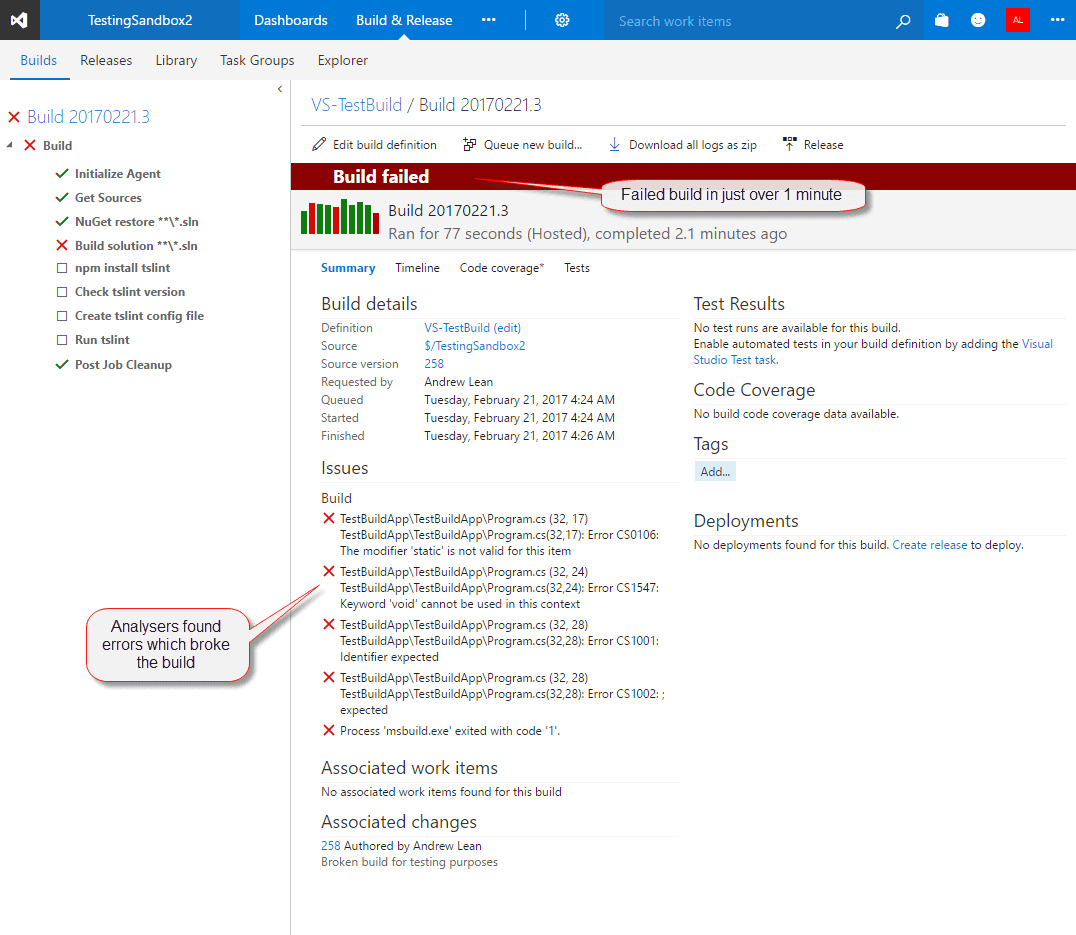 - Azure DevOps - How to produce a build script which analyses code as part of the build process
