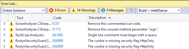 Issues from these will now be returned in the Visual Studio analyzer error list.