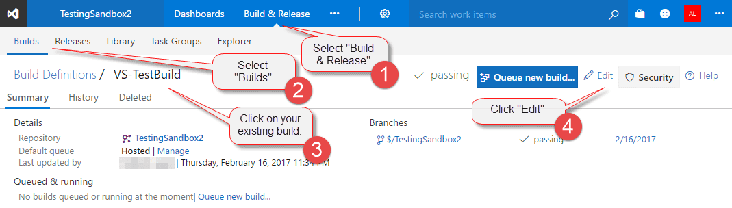 Edit the build definition
