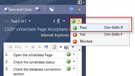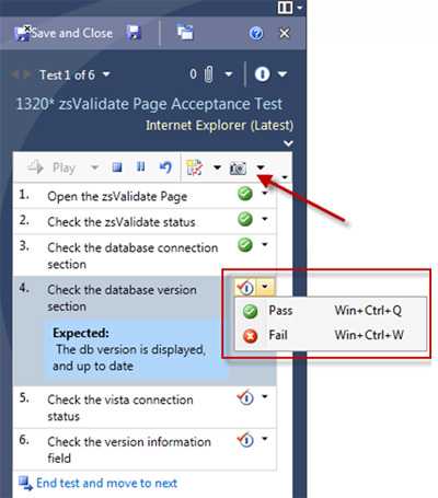 Figure: As you progress through each step, 'Pass' or 'Fail' the expected results. Take screen captures or video as appropriate