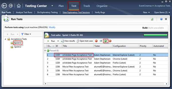 Tip: You can pass a test from the test list. Select the Test menu, then the Test Suite. Choose the Test Case to pass and then click the green button ‘Pass Test’.
