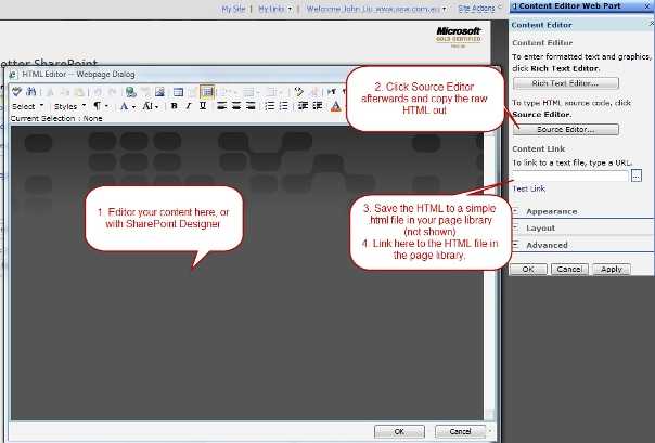 - Do your content editing in the Content Editor Web Part, or in SharePoint Designer.