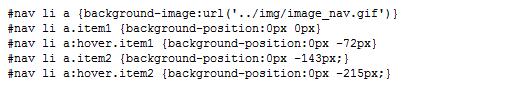 A sprite is an image that has all of your other images inside of it, so if your sprite has 5 images, you’d be getting rid of 4 HTTP requests and speeding your site’s loading time up by the time for each of those 4 requests latency. You will use CSS selectors for each link to display only a portion of the image sprite - effectively showing just the image you need.