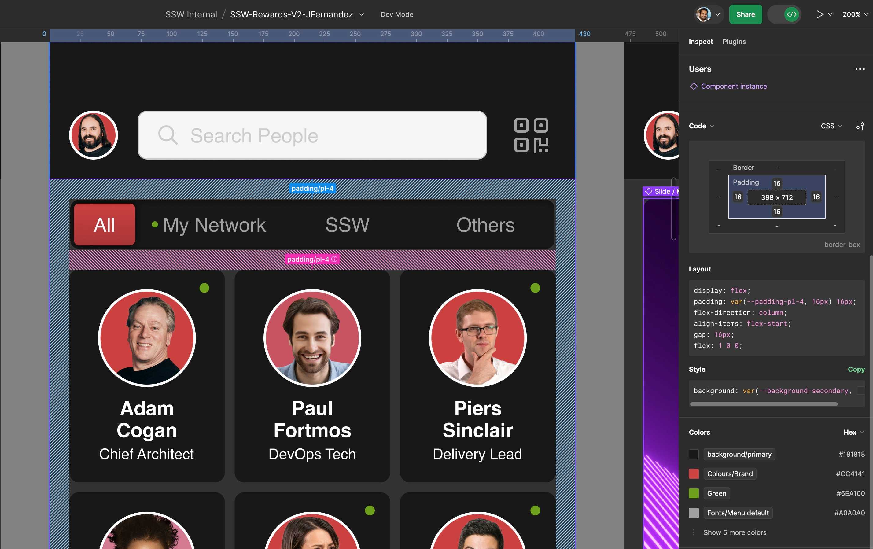 Developer Handoff: Figma simplifies the handoff process from design to development. Designers can generate design specs, export assets, and provide CSS code snippets to developers. This streamlines the communication between design and development teams, ensuring that the final product matches the intended design.