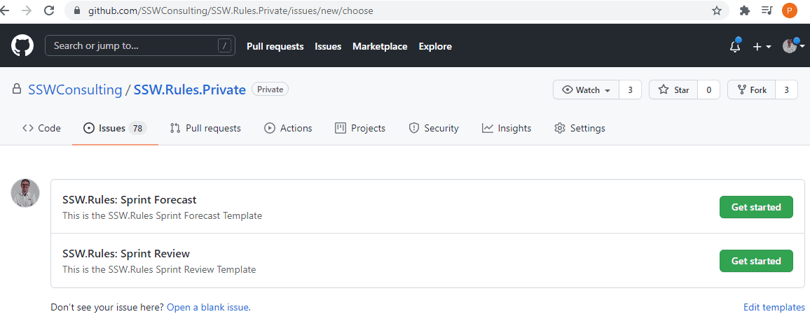 GitHub Issues - Do you create templates for Sprint Reviews/Retros/Forecasts?