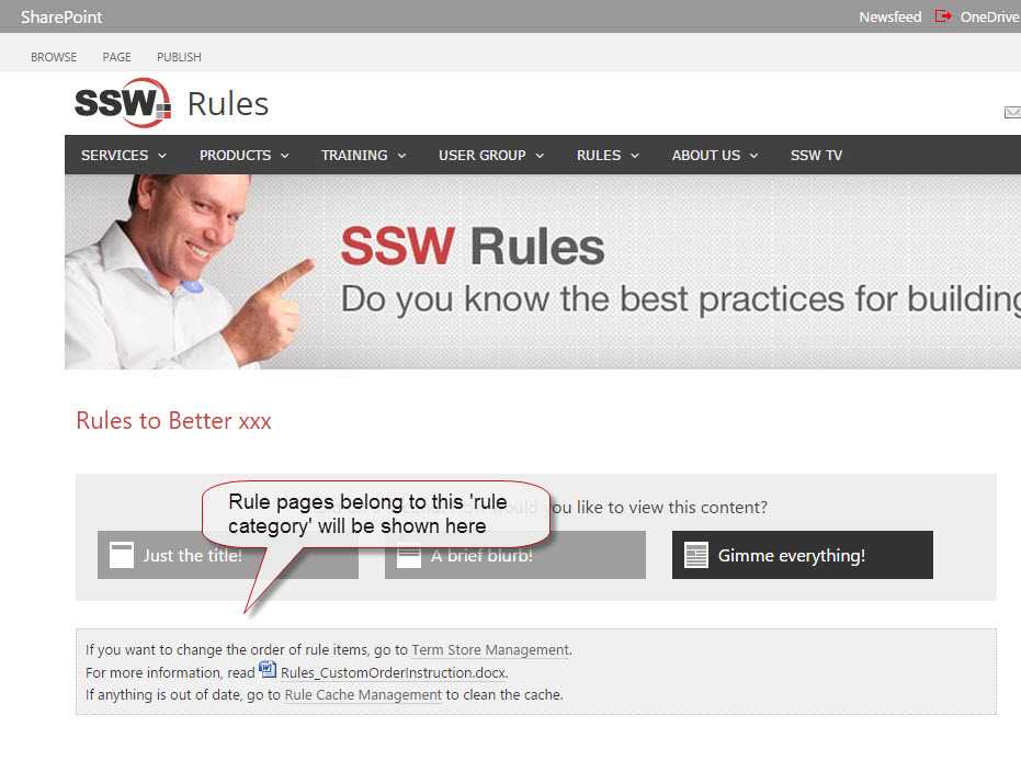 - Create a "rule category" in Term Store (e.g. "Rules to Better xxx")