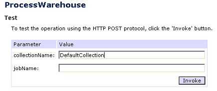 Figure: Call "ProcessWarehouse" web service with parameter "DefaultCollection" -