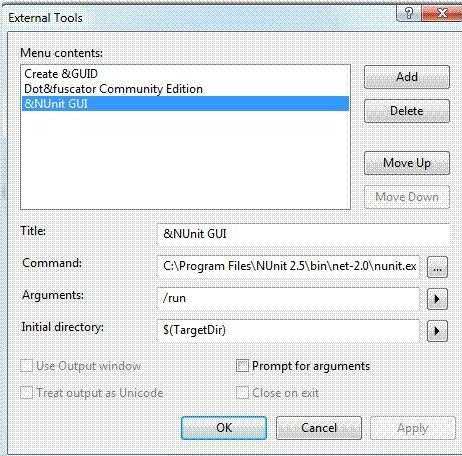 Using NUnit with Visual Studio: To make it easy to use, you need to add it as an external tool in Visual Studio.