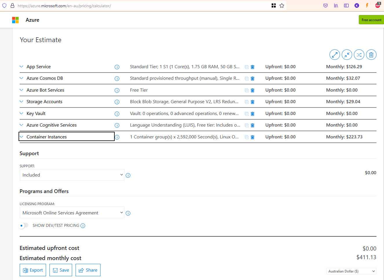 - Use the Azure calculator - work out the monthly resource $ price