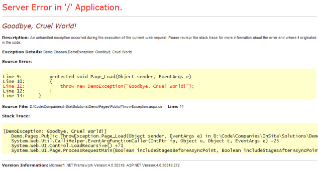 However, as a developer you still want to be able to view the detail of the exception in your local development environment.
