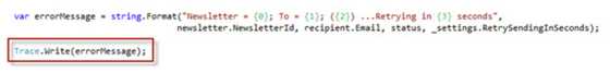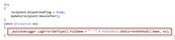 Figure: Bad example - Using Debug or Trace for logging, or writing hard coded mechanisms for logging does not allow you to configure logging at runtime