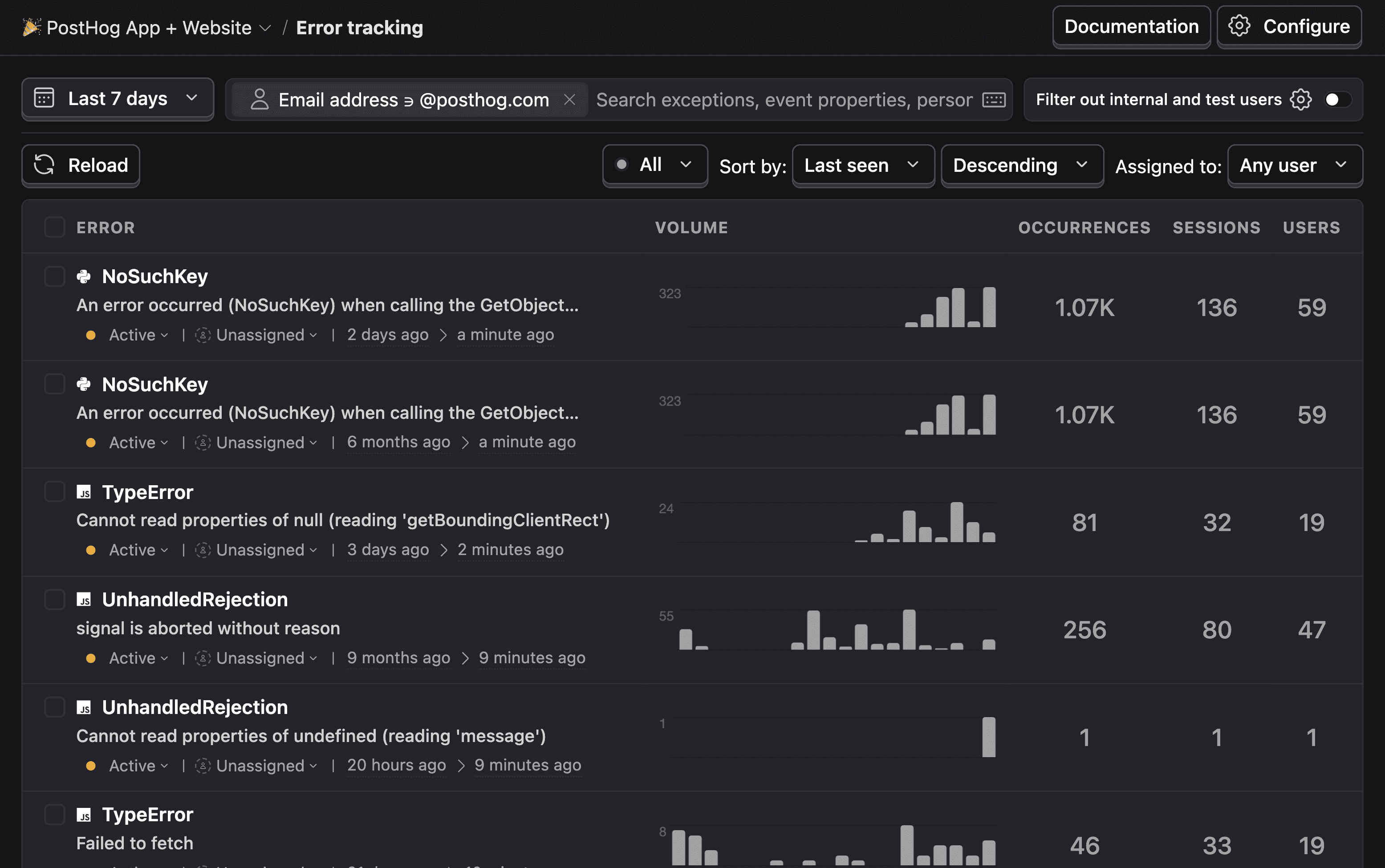 Figure: PostHog dashboard showing key metrics at a glance PostHog excels at answering questions like "Which features are users actually using?" and "Where do users drop off in our workflow?" The session replay feature is particularly valuable for debugging user-reported issues, while exception reporting ensures you're notified immediately when errors occur