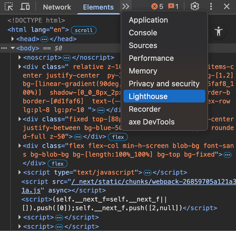 Figure: Lighthouse in DevTools axe DevTools