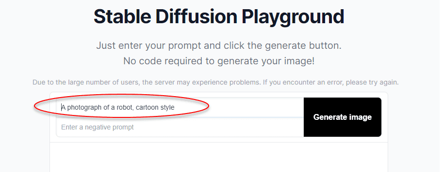 - Write a short description of the image you want (optional: include a negative prompt (specifying what you DON’T want in the image)