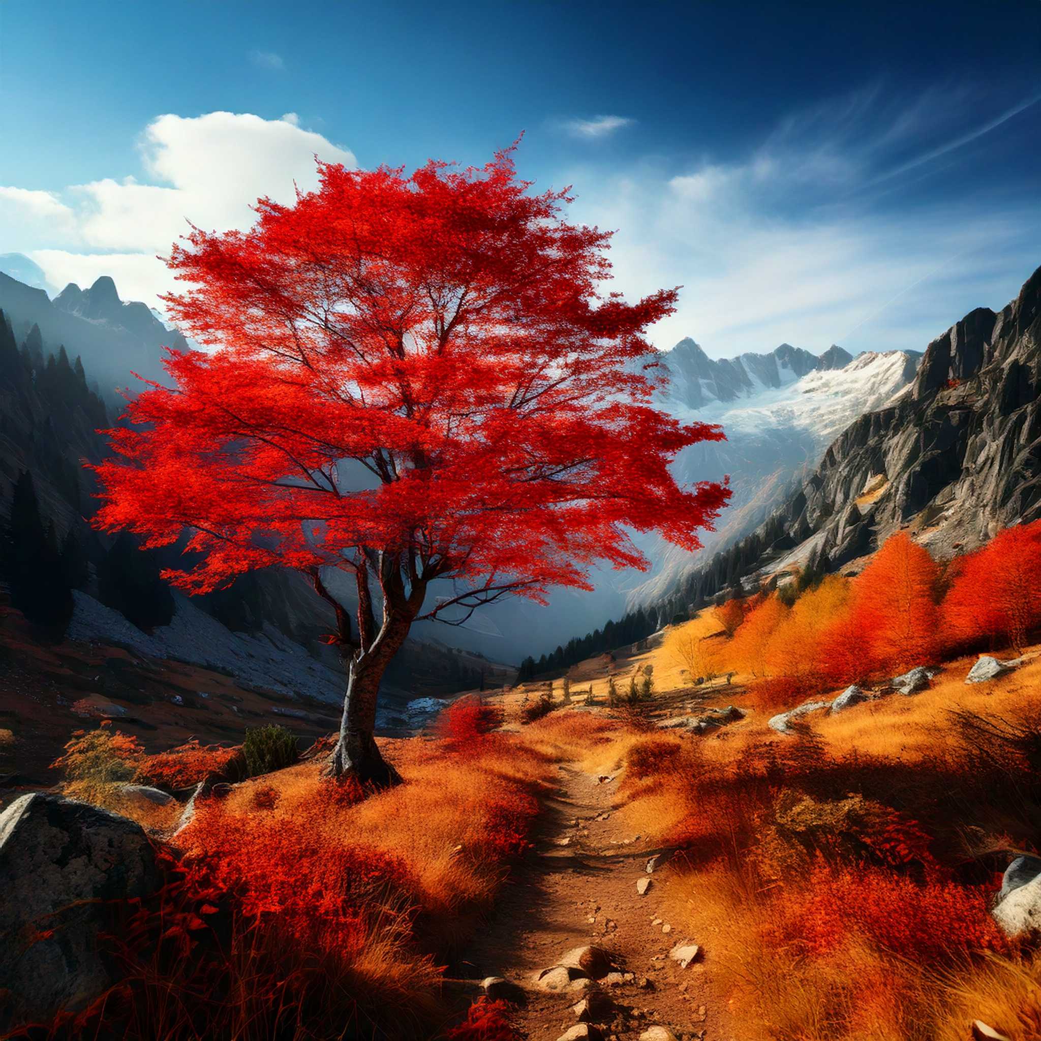 Figure: "A red tree in a valley. Hi res" - by Reve Adobe Firefly