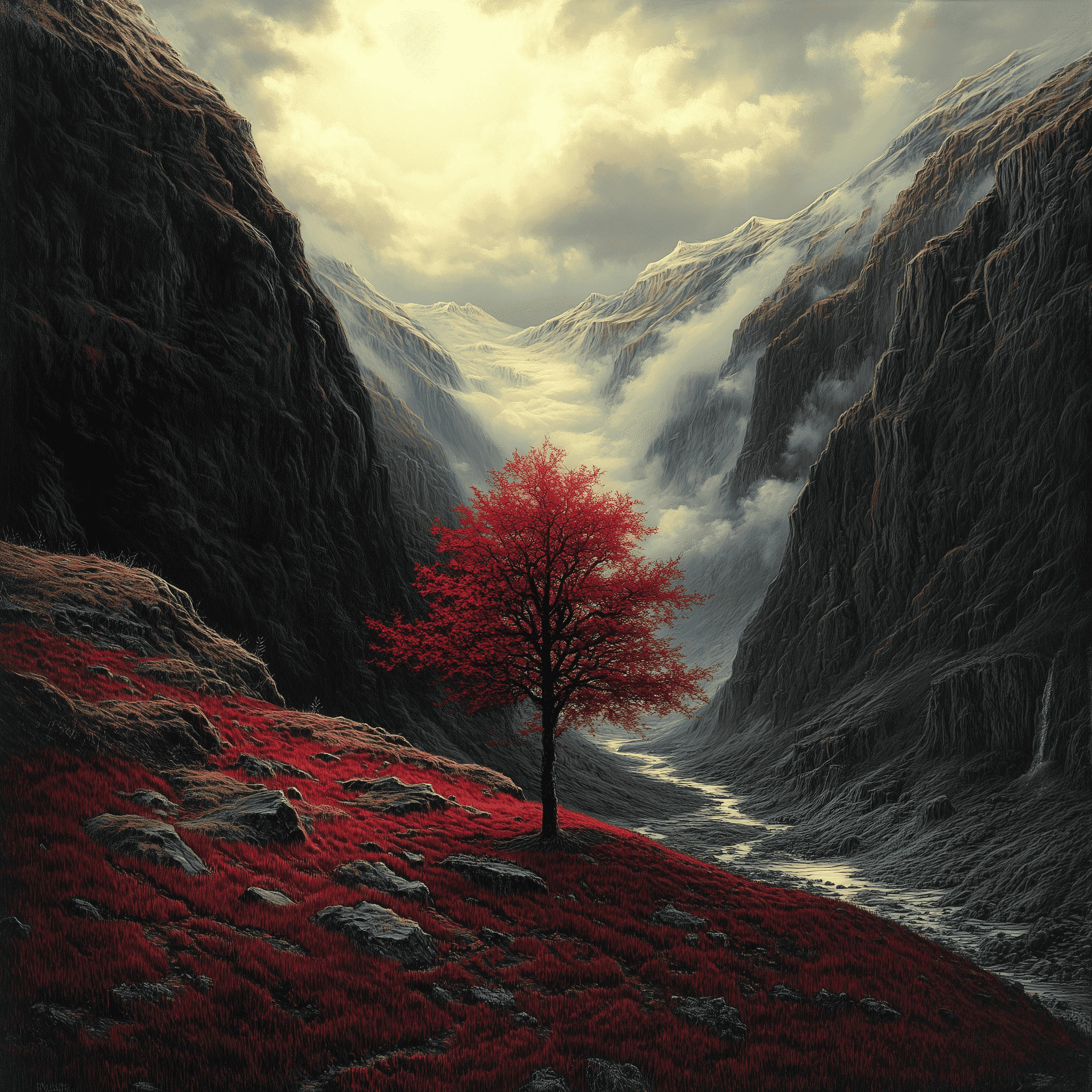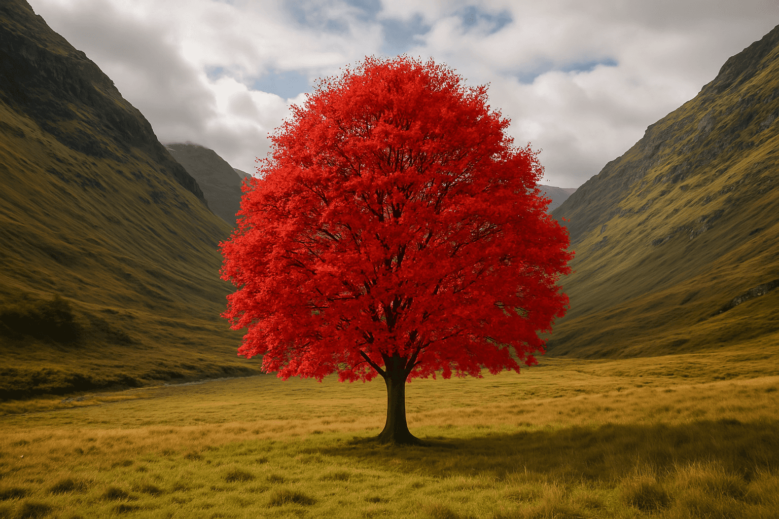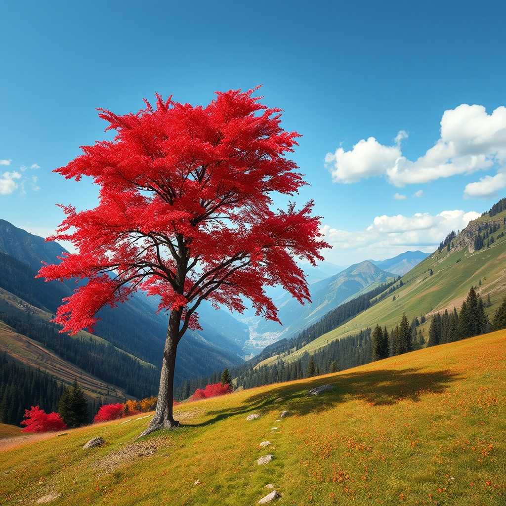 Figure: "A red tree in a valley. Hi res" - by Imagen 3 Reve