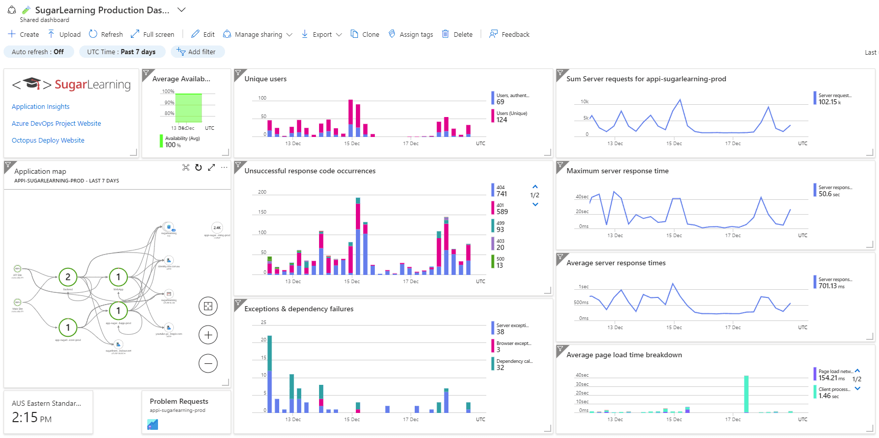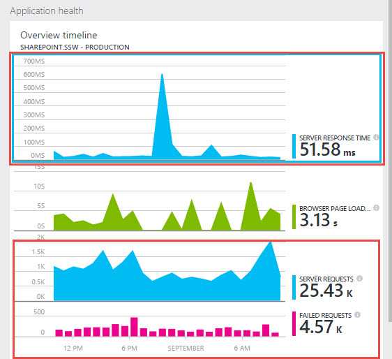 More advanced teams check their application insights data as well. This includes: