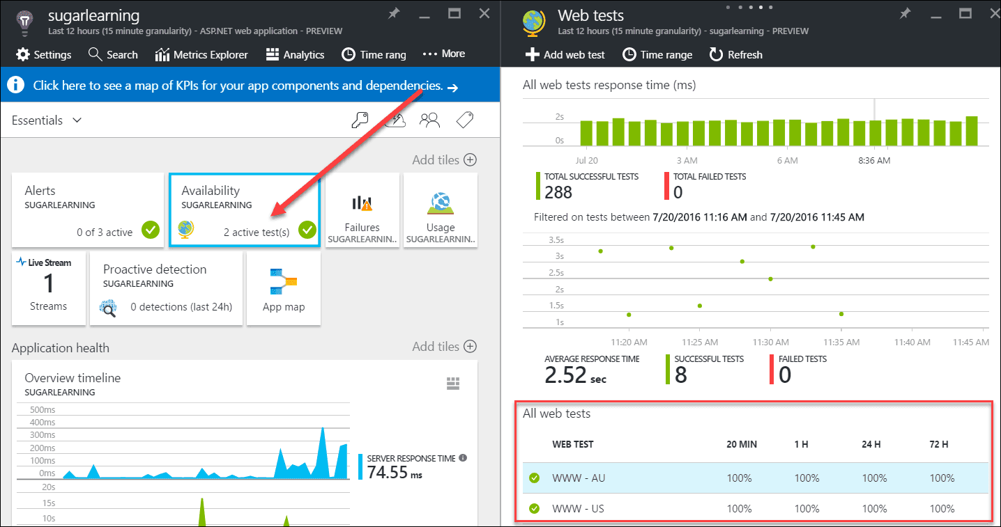 Good example: Availability tests are created for multiple locations