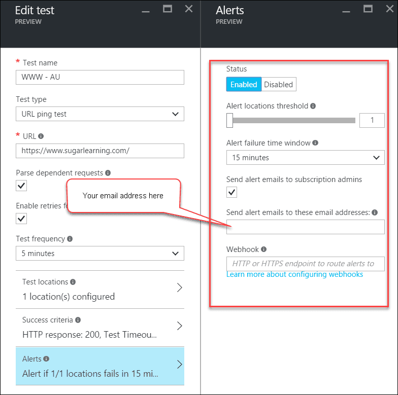 Good example: Email alert is enabled to minimize the downtime