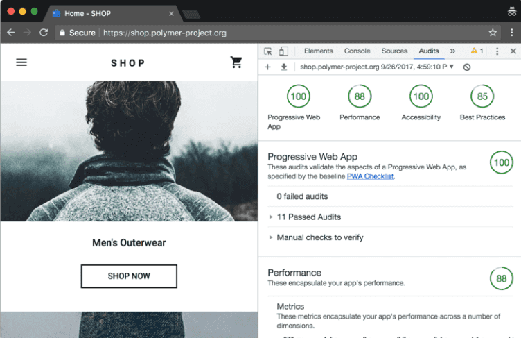 One of the best ways to measure performance is by using Lighthouse, a widely used tool for analyzing key web performance metrics such as: