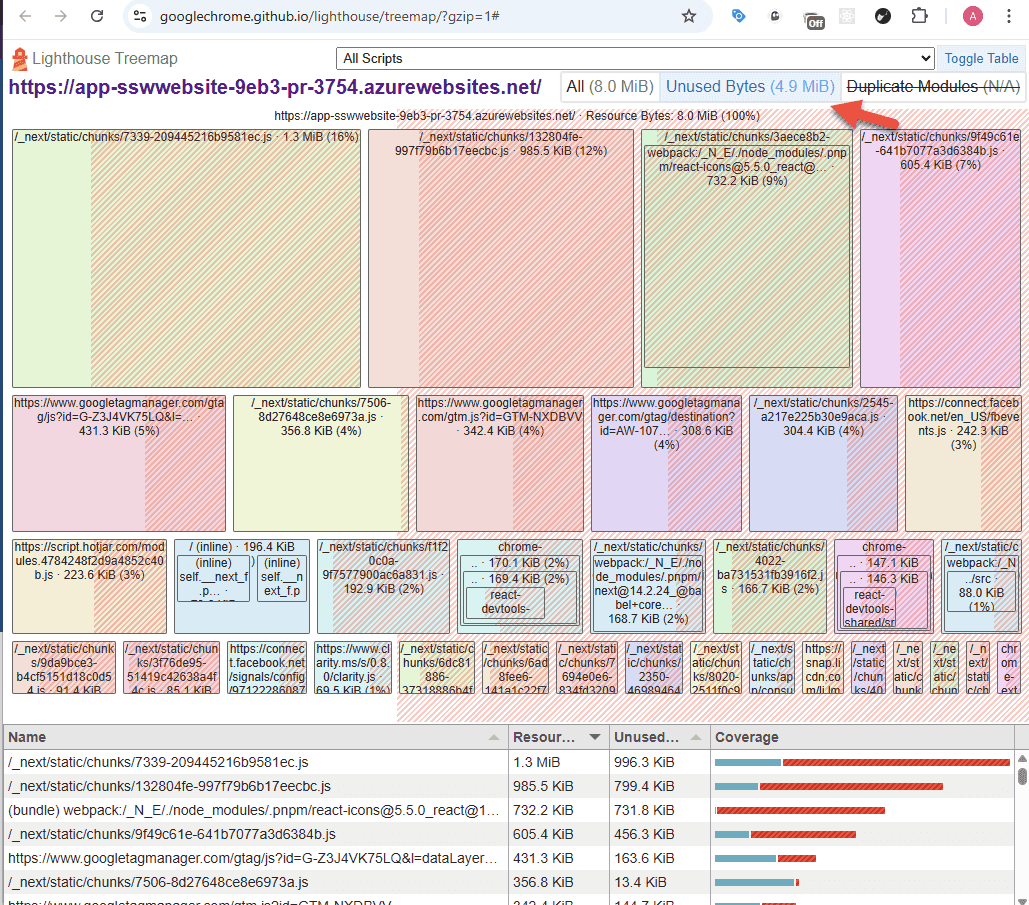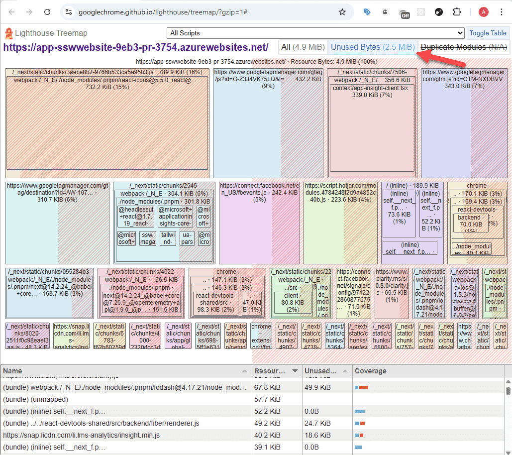 Checking the Lighthouse Treemap for bundle size