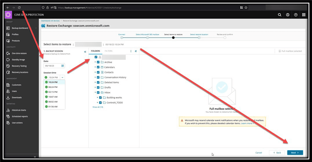 - N-Able by Cove Data Protection (Recommended): Offers comprehensive backup options for Exchange, SharePoint, and OneDrive. N-Able allows for efficient data backup and easy restoration with just a few clicks, ensuring high data protection and accessibility.