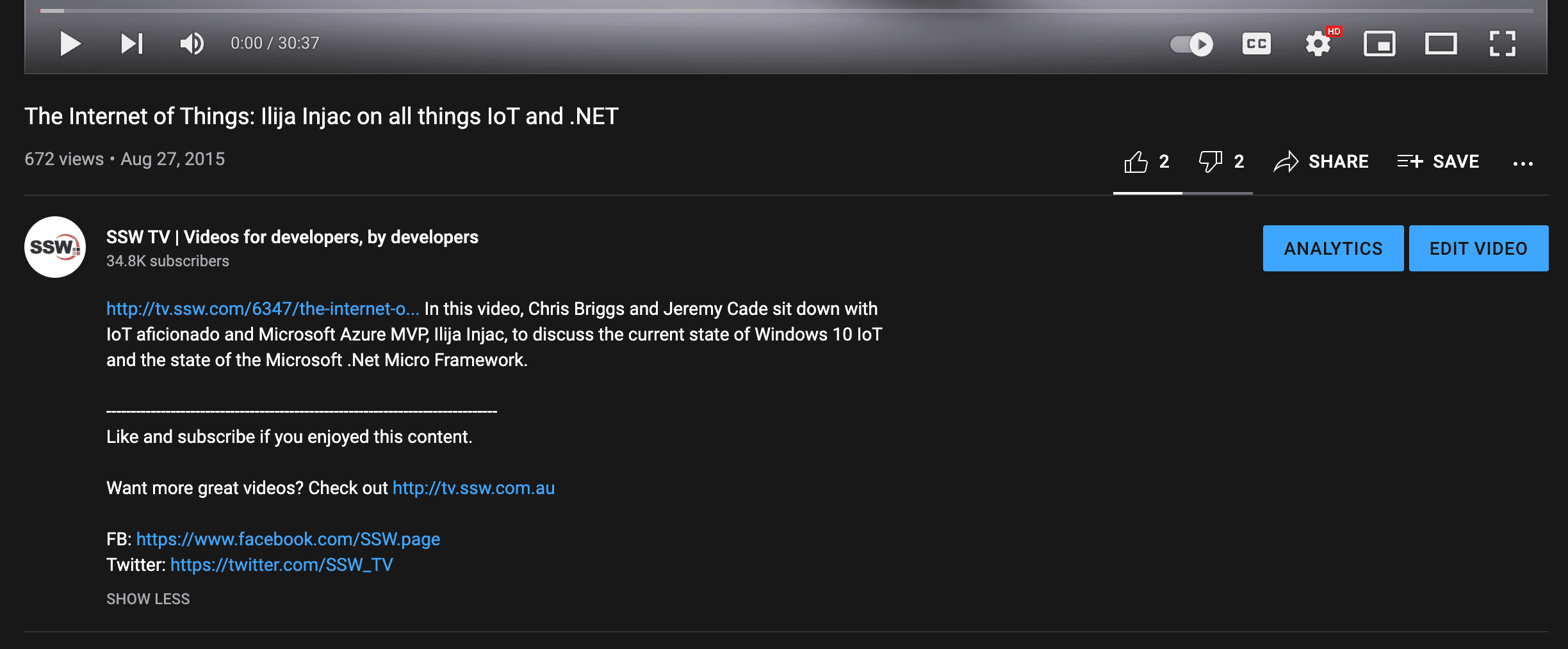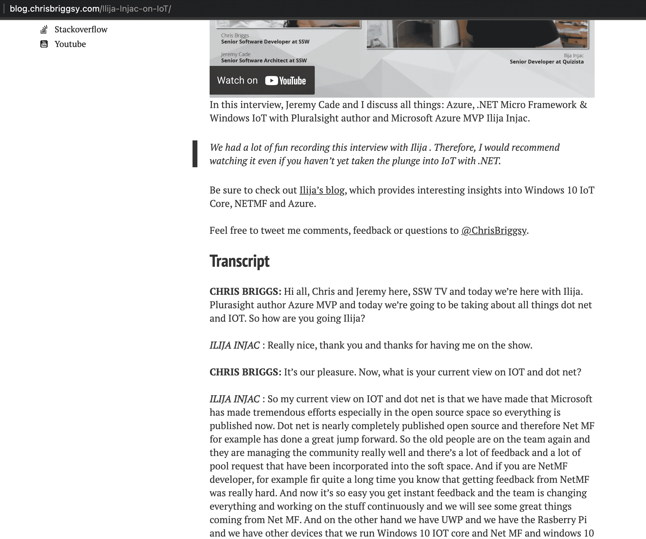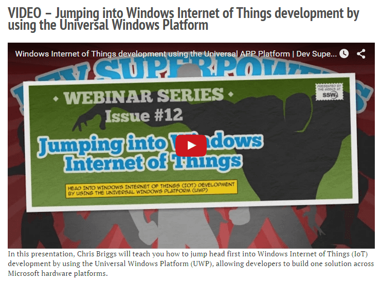 Figure: Include a transcript in your content Check the whole transcription on Chris Briggs' blog post: VIDEO – The Internet of Things - Ilija Injac on all things IoT and .NET.
