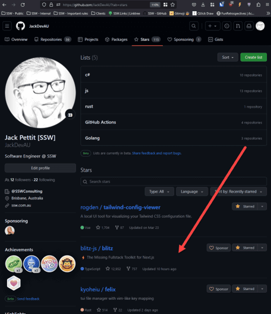 Track your employees' GitHub stars by visiting their GitHub profile and navigating to the 'Stars' tab. Recognizing and applauding their interactions in the developer community can be a motivation booster.