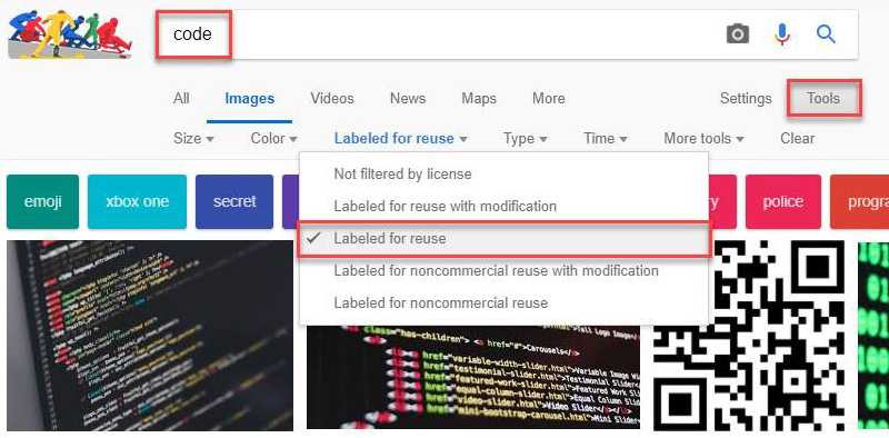 - Using Google Images that are labeled for reuse: