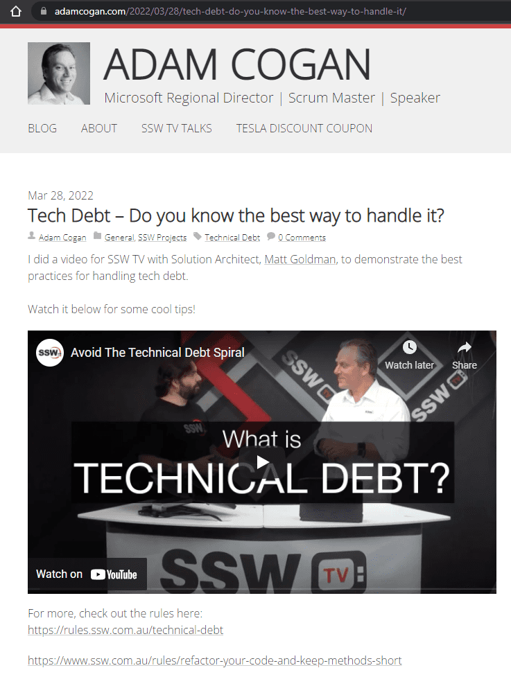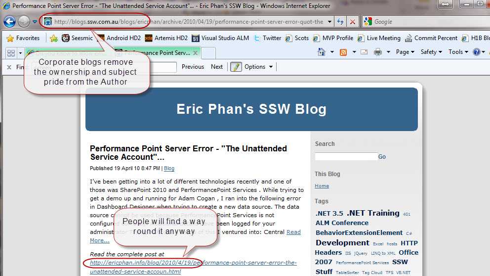 Tip: Get your employees to add an “SSW” category to their blog so you can aggregate their posts onto the corporate site.