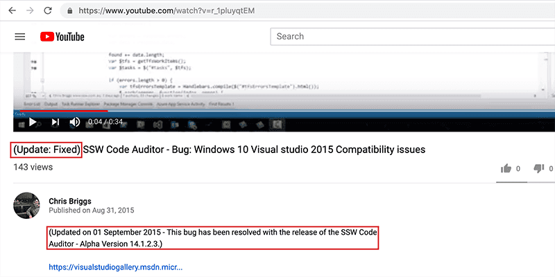 Bob Northwind <www.ssw.com.au>Figure: Good example - Always add your signature (name and URL) when commenting. Opt for a friendly tone, like "thanks" instead of a more formal "thank you".