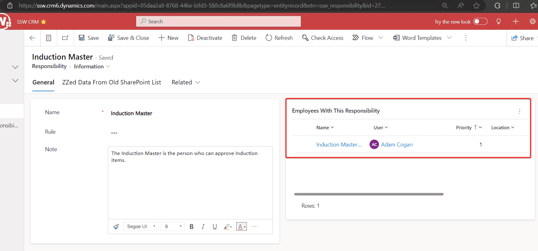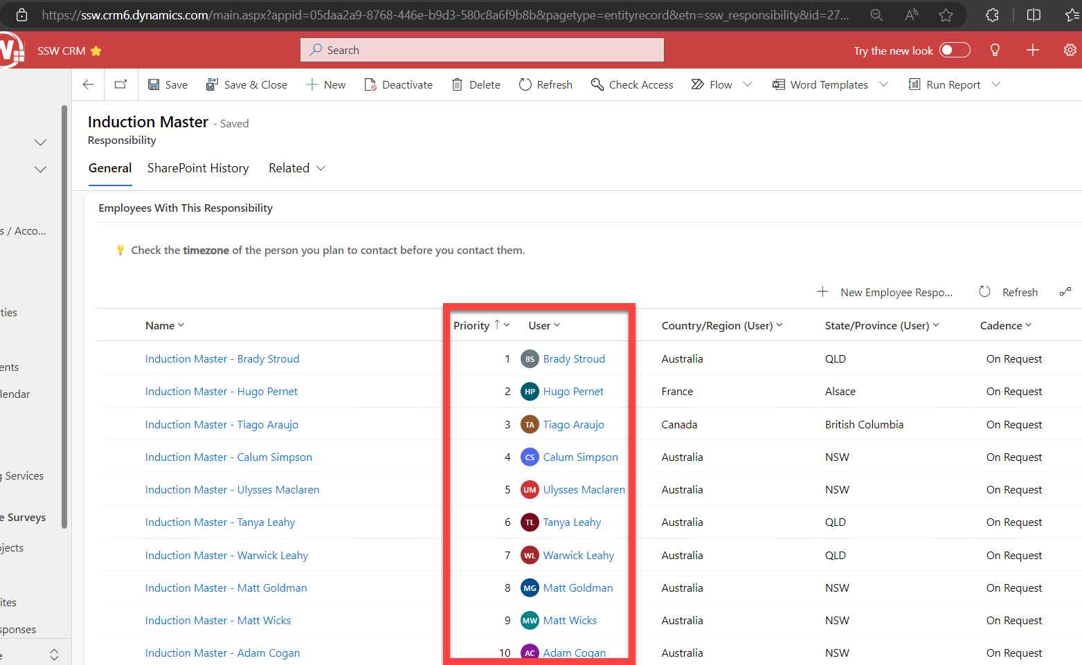 Figure: Good example - There are 10 Induction Masters responsible for approving everyone's induction - in this case I would start with Brady 3. Classify - Determine the importance of the task