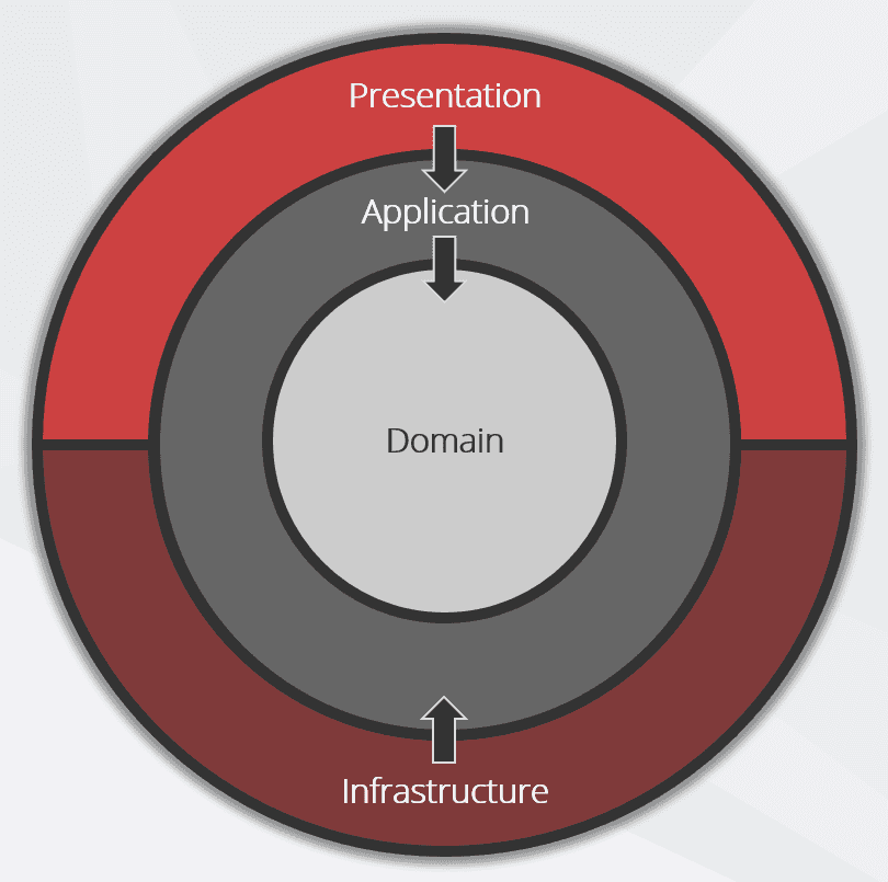 Instead of having Core (Domain & Application layers) depend on data access and other infrastructure concerns, we invert these dependencies, therefore Infrastructure and Presentation depend on Core. This is achieved by adding abstractions, such as interfaces or abstract base classes, to the Application layer. Layers outside of Core, such as Infrastructure and Persistence, then implement these abstractions.