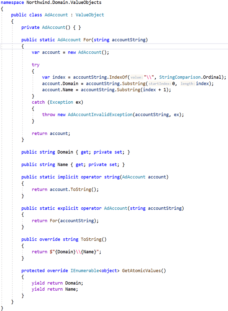 public sealed class OrderByIdSpec : SingleResultSpecification<Order> { public IncompleteOrderByIdSpec(Guid orderId) { Query .Include(o => o.OrderItems) .Where(o => o.Id == orderId && o.Status != OrderStatus.Complete); } } public class OrderService(ApplicationDbContext dbContext) { public async Task AddItem(Guid orderId, OrderItem item) { var order = dbContext.Orders .WithSpecification(new OrderByIdSpec(orderIdorderId)) .FirstOrDefaultAsync(); order.AddItem(item); await dbContext.SaveChangesAsync(); } public void RemoveItem(int age) { var order = dbContext.Orders .WithSpecification(new IncompleteOrderByIdSpec(orderIdorderId)) .FirstOrDefaultAsync(); order.RemoveItem(item); await dbContext.SaveChangesAsync(); } }Figure: Good example - Specification used to keep Order query logic DRY