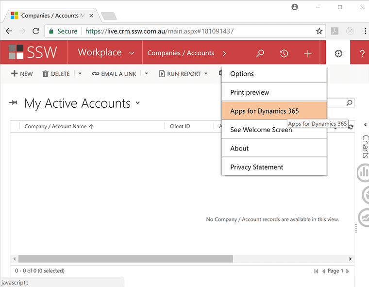- Open a new tab and navigate to your CRM. E.g. At SSW, it is ssw.crm6.com