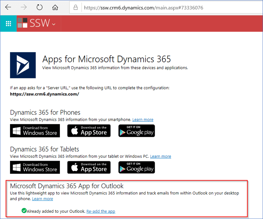 After this is done, you should install the Dynamics 365 App for Outlook.