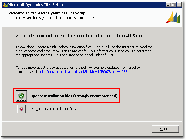 When running the Microsoft CRM 4 installation file, you can check for setup updates.