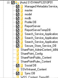 Figure: Ensure you back up the remaining databases in the SharePoint SQL Instance After following these steps you will have full protection of your SharePoint databases.