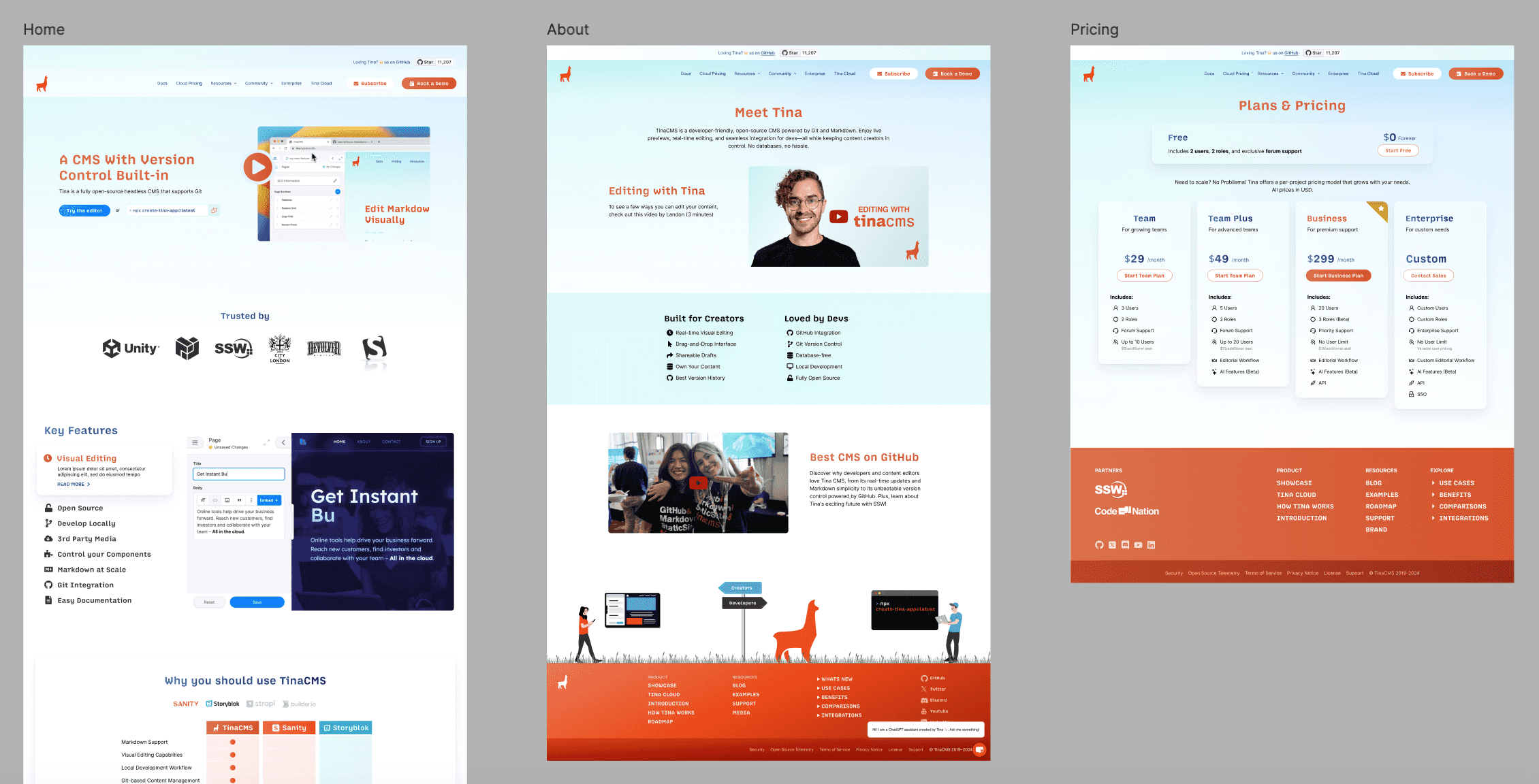 Figure: TinaCMS website mockups (UI/UX) Key differences