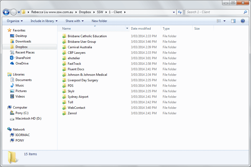 Google Drive and Dropbox don’t work in China, so SSW prefers to use OneDrive.