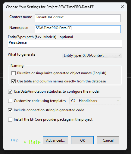 - Right click on the project | EF Core power Tools | Reverse Engineer