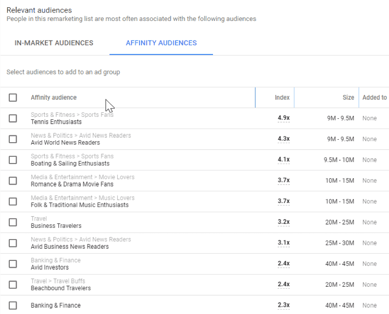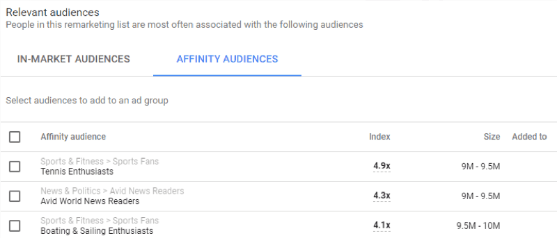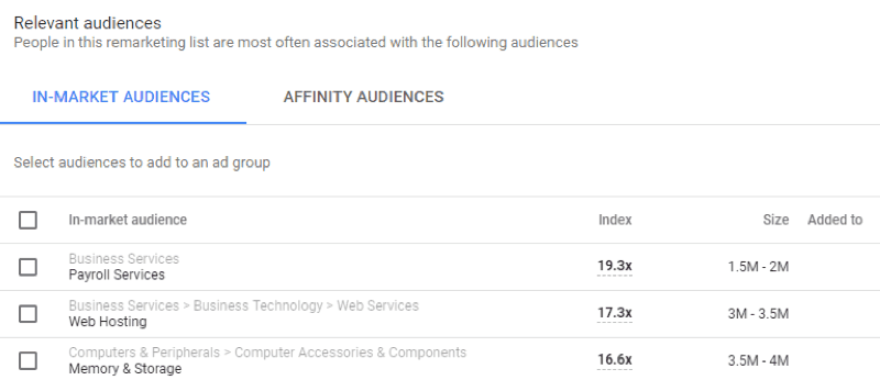 Figure: In-Market audiences that might be your right targetFigure: Affinity audiences suggestions from Google