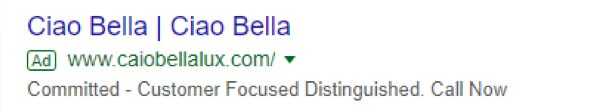 Figure: Bad Example – Ad doesn't have a clear message about either product or service, there’s no call extension even though it mentions "Call Now"