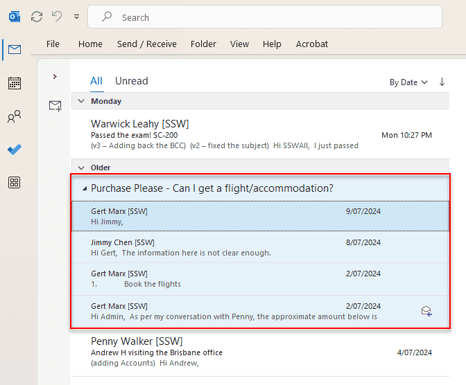 You may be involved in different tasks simultaneously every day. The best way to organize your tasks and follow each task individually is grouping your emails by conversation. By default, Outlook sorts the emails by Date.